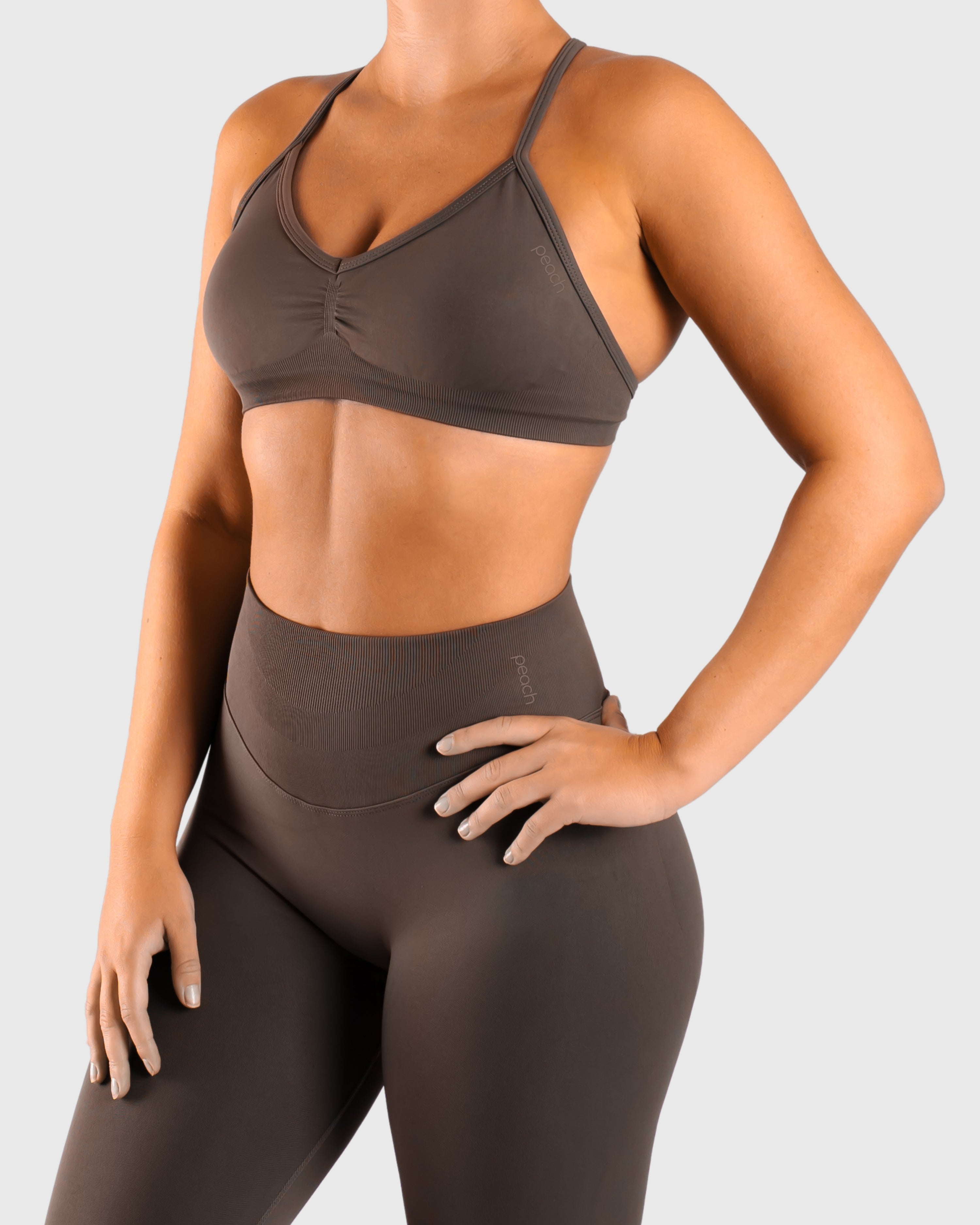 Vivid sports-BH er designet for både stil og funksjon. Den har en scrunch-detalj foran som skaper en flatterende V-formet utringning som fremhever brystområdet.