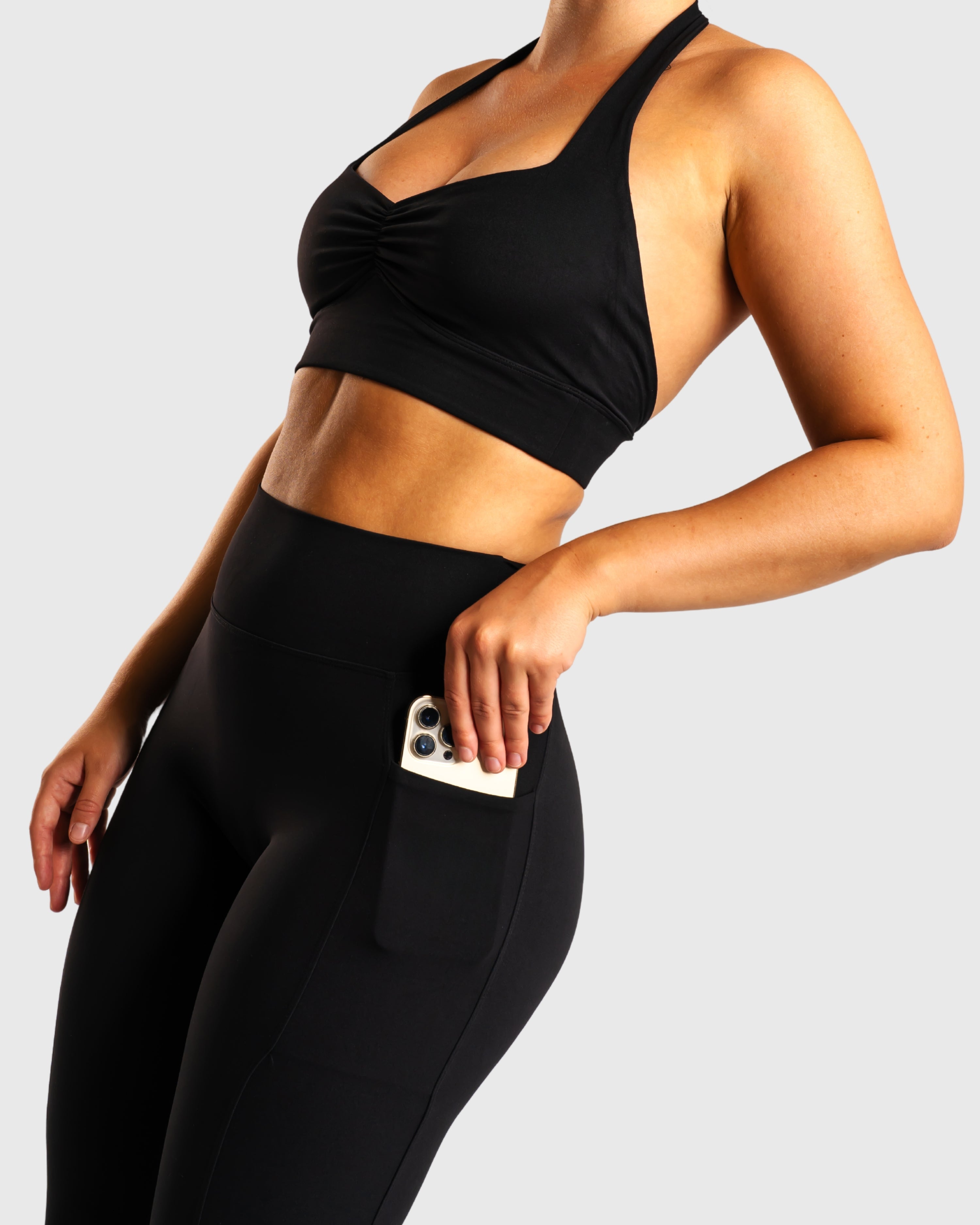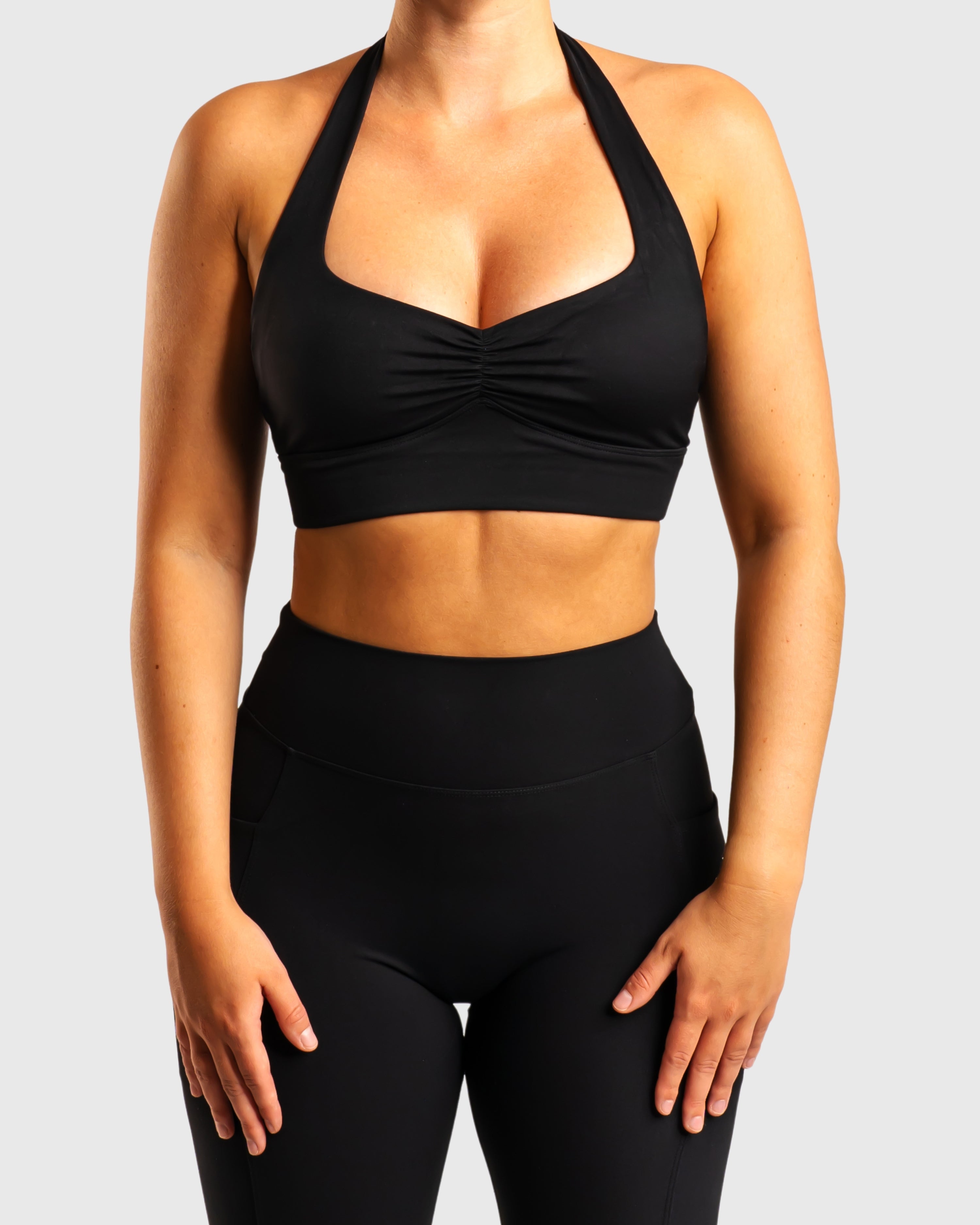 Opplev den perfekte kombinasjonen av stil og støtte med vår Pulse sports-BH. Denne halterneck-BH-en har åpen rygg, og foran har den et subtilt hjerteformet design med en delikat rysjedetalj.