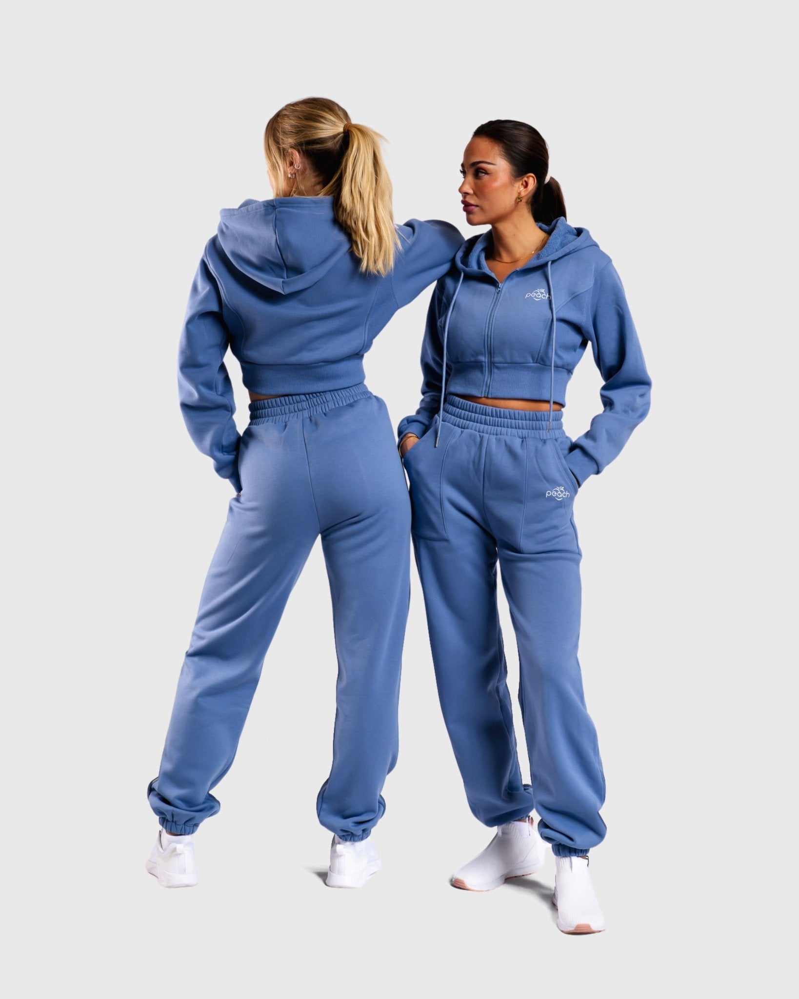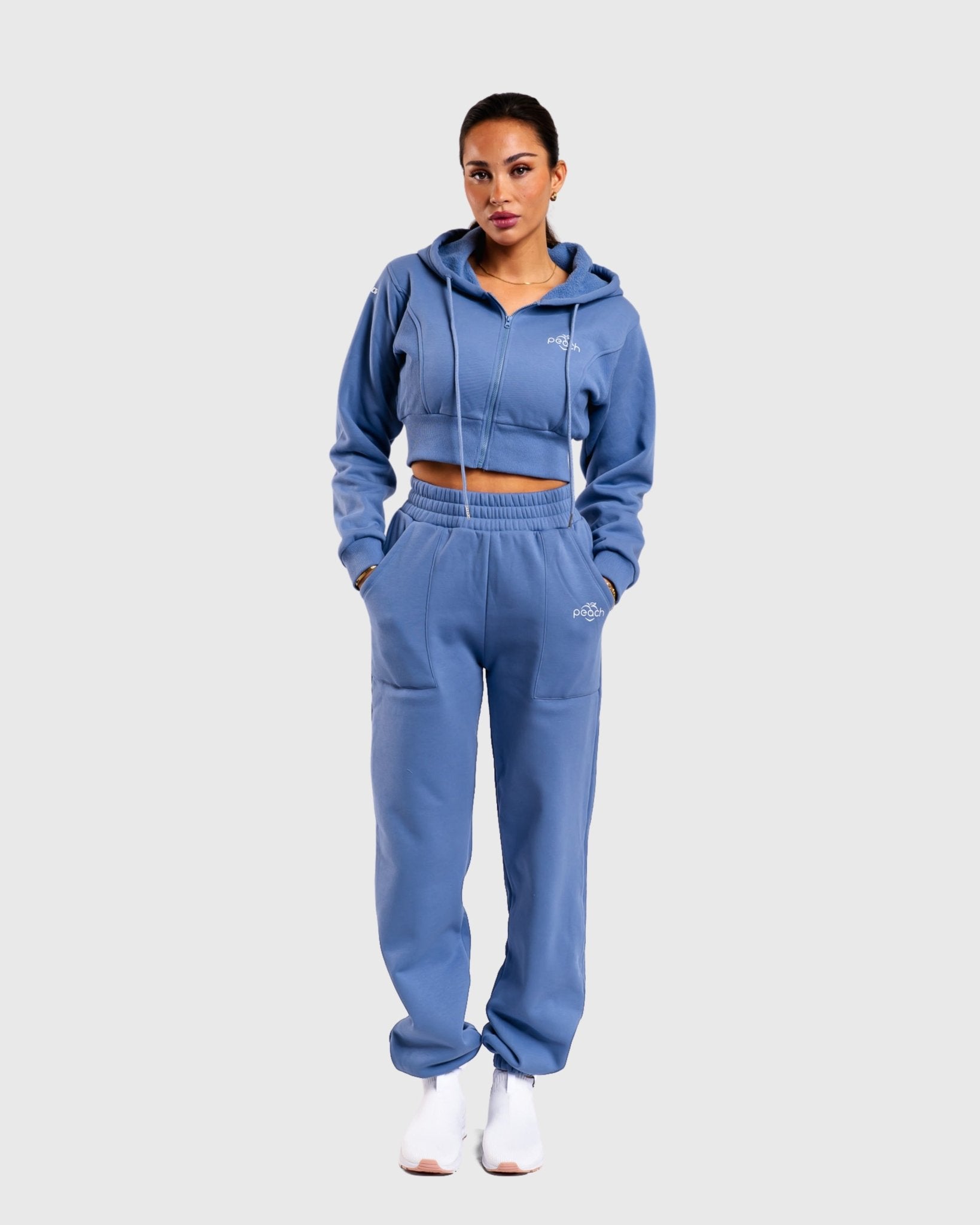Vibe-kolleksjonen, designet for komfort og stil, består av baggy joggebukse og en cropped hettegenser med glidelås. Hvert plagg er foret med mykt innvendig stoff for ekstra varme og kos.