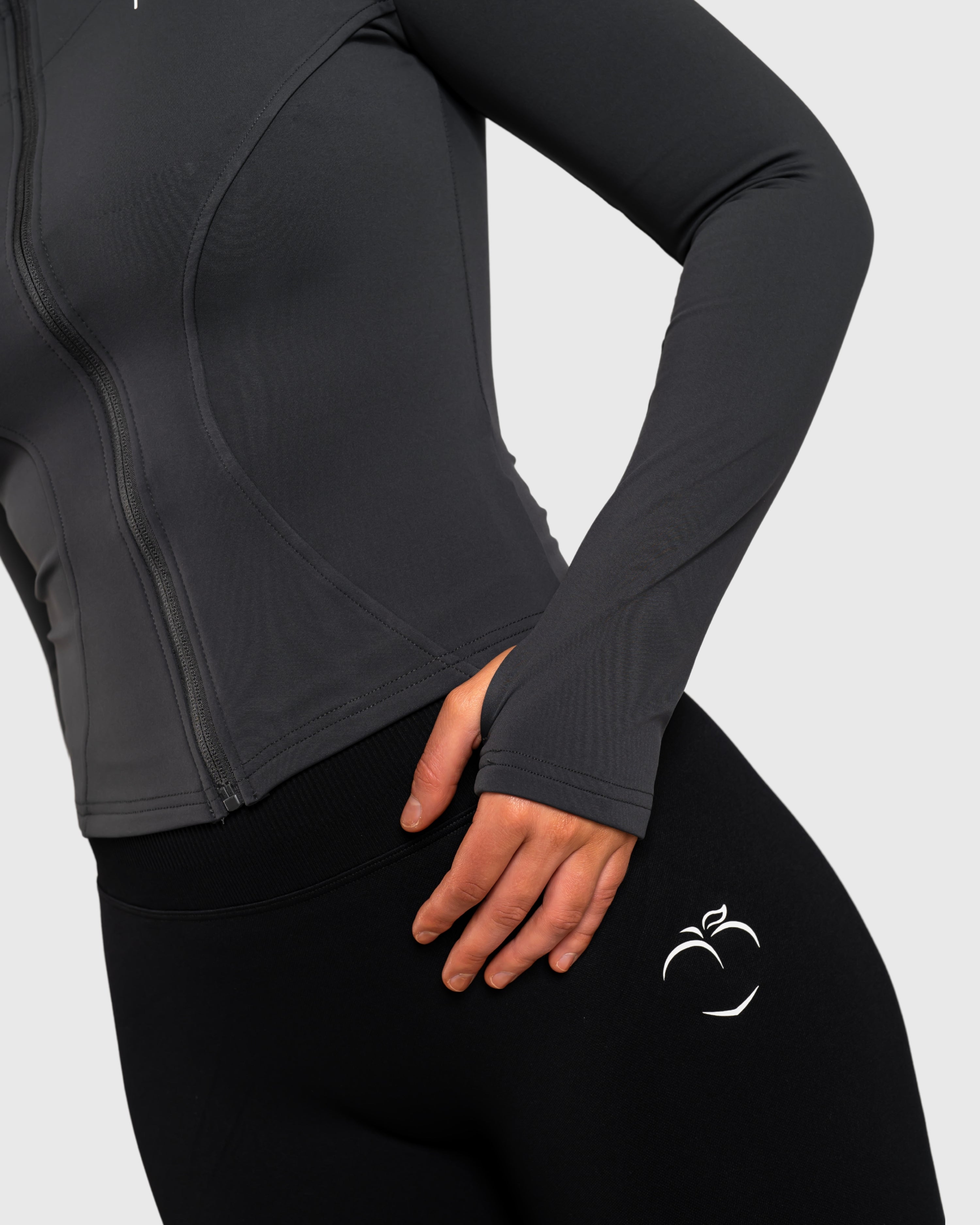 Active Jacket er laget av et lett, elastisk stoff som følger kroppens bevegelser og gir en smigrende passform. Den sitter tett over overkroppen og fremhever midjen med stilrene sømdetaljer. Med en praktisk glidelås, høy krage og tommelhull gir den både komfort og funksjonalitet.
