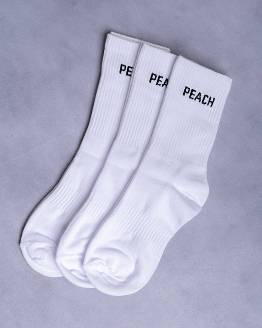 Våre myke og stretchy sokker kommer i tre ulike lengder – perfekt for både trening og hverdagsbruk. Med en ribbestrikket design og et diskret PEACH-logo, gir de både stil og komfort hele dagen.